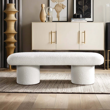 Christina Leather Bench, Mid-Century Modern, Solid Wood Frame, Cognac