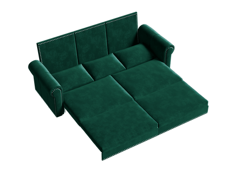 King Sleeper Sofa Bed 94", 3-in-1 Convertible in Velvet with Nailhead Trim