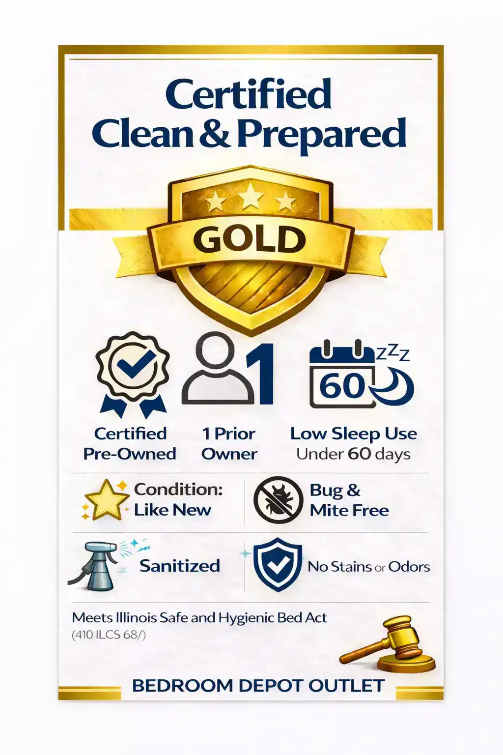 This mattress has been professionally inspected, sanitized, and approved for resale through our Certified Clean & Prepared™ process. It is fully functional, structurally sound, and meets our outlet quality standards.