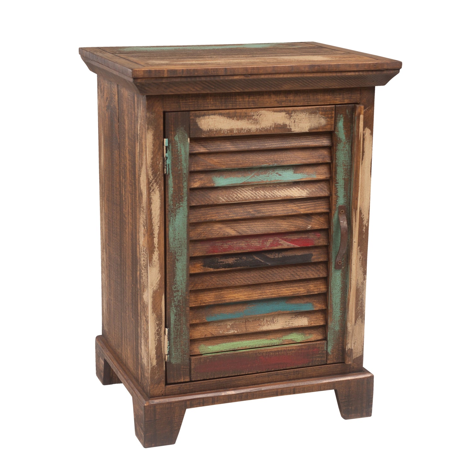 Discover rustic charm and functionality with our Cabana Rustic Nightstand featuring 1 door. Crafted from durable solid pine wood, each piece is uniquely finished with a blend of multicolor tones and a dark wax finish, ensuring both distinctive style and lasting quality. Perfect for adding a touch of warmth and character to any bedroom, this nightstand combines traditional craftsmanship with modern practicality. Explore our Cabana Rustic collection to complete your rustic-inspired retreat.