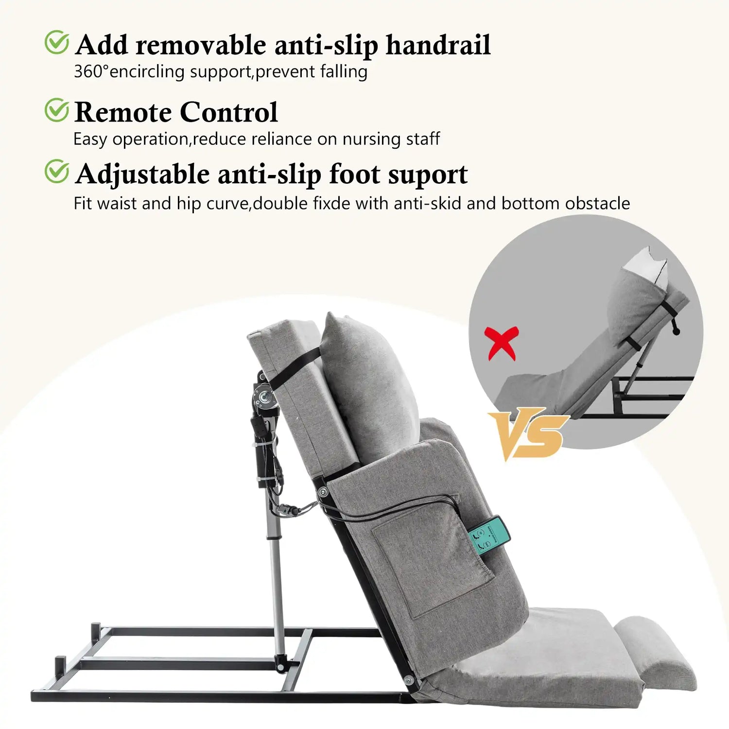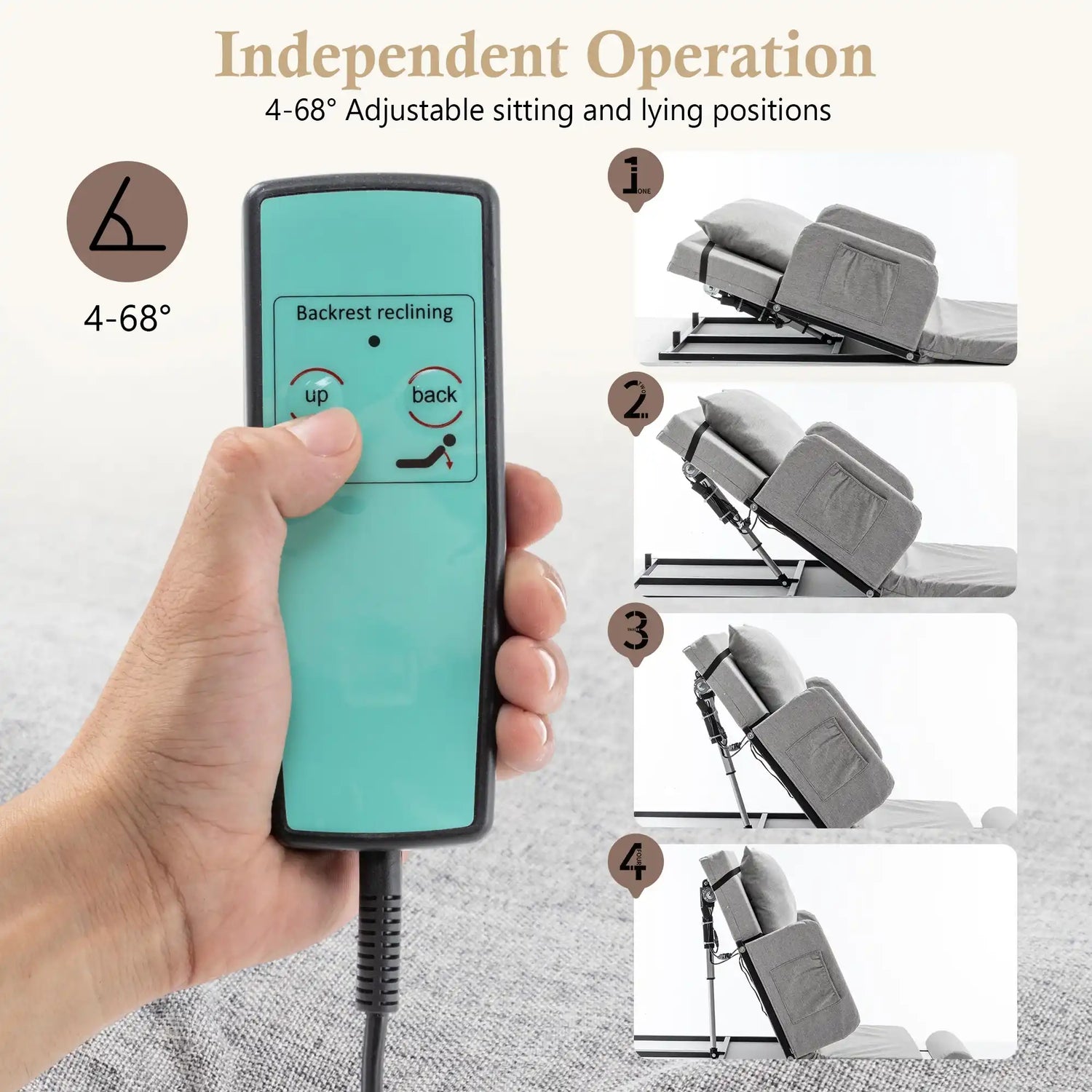 Electric Adjustable Bed Backrest, Safety Rails, 300 lbs Capacity, Washable Cover
