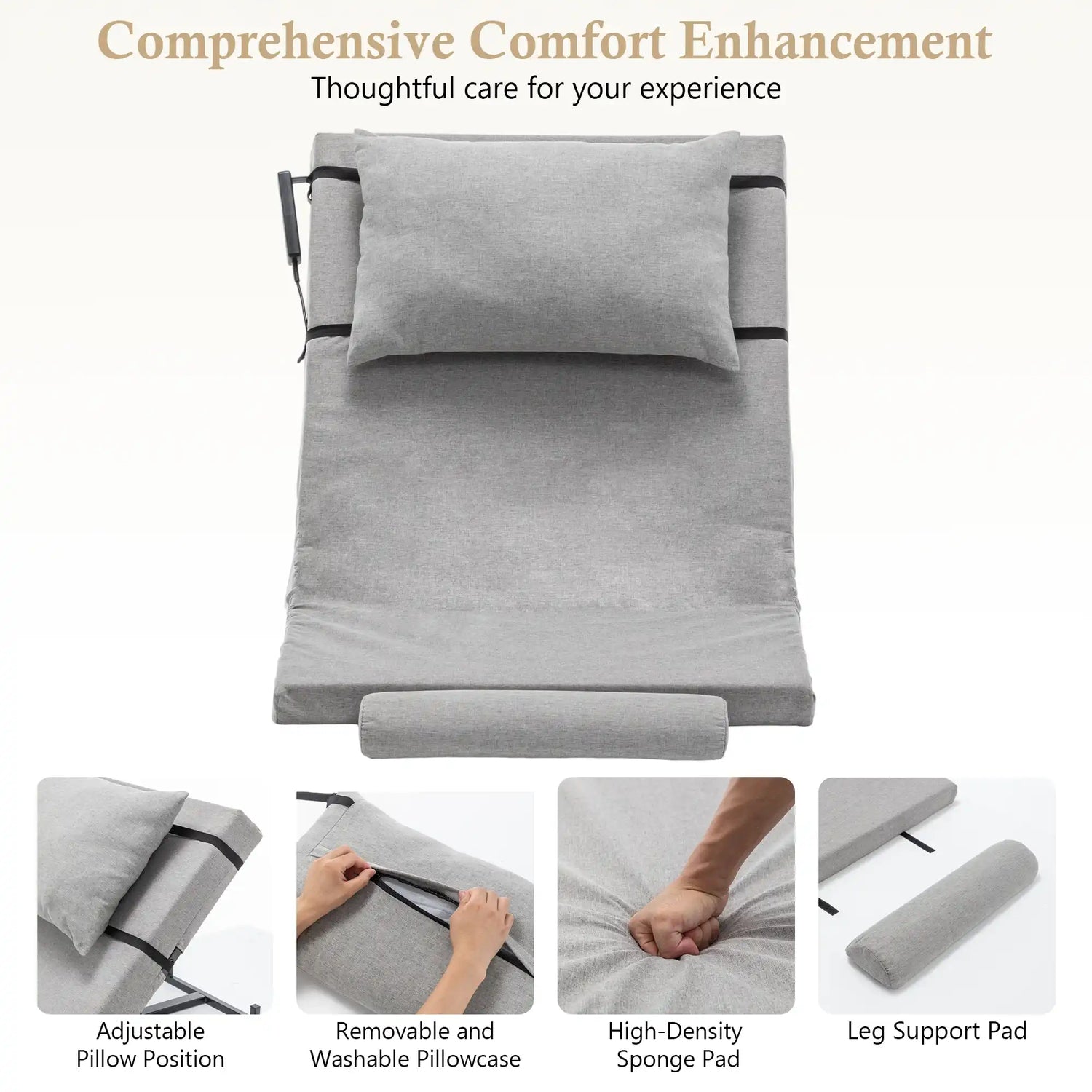 - 【Superior Support & Safety】Crafted with a robust carbon steel frame and high-density supportive foam, this electric backrest effortlessly supports up to 300 lbs. The reinforced structure and anti-collapse safety rails prevent slipping or tipping, offering peace of mind for users and caregivers.