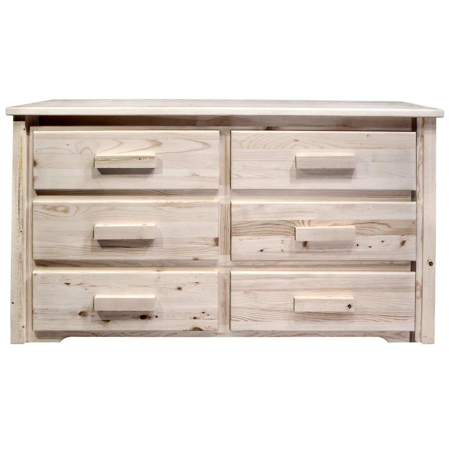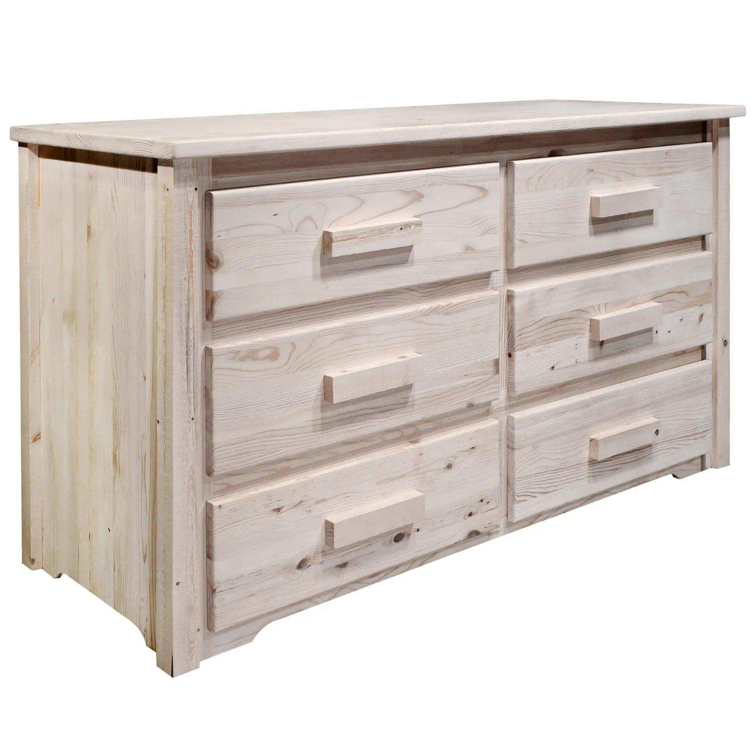 From Montana Woodworks®, the largest manufacturer of handcrafted, heirloom quality rustic furnishings in America comes the Homestead Collection line of furniture products. Handcrafted in the mountains of Montana using solid, American grown wood, the artisans rough saw all the timbers and accessory trim pieces for a look uniquely reminiscent of the timber-framed homes once found on the American frontier. With a full six drawers of handcrafted space, this wonderful dresser will add elegance to any master bedroom while providing storage for all your essentials and delicates. Constructed using solid wood and full extension, ball bearing glides, this dresser's heirloom quality design ensures it will last for generations. Comes fully assembled. This item comes professionally finished with a premium grade lacquer finish. 20-year limited warranty included at no additional charge.