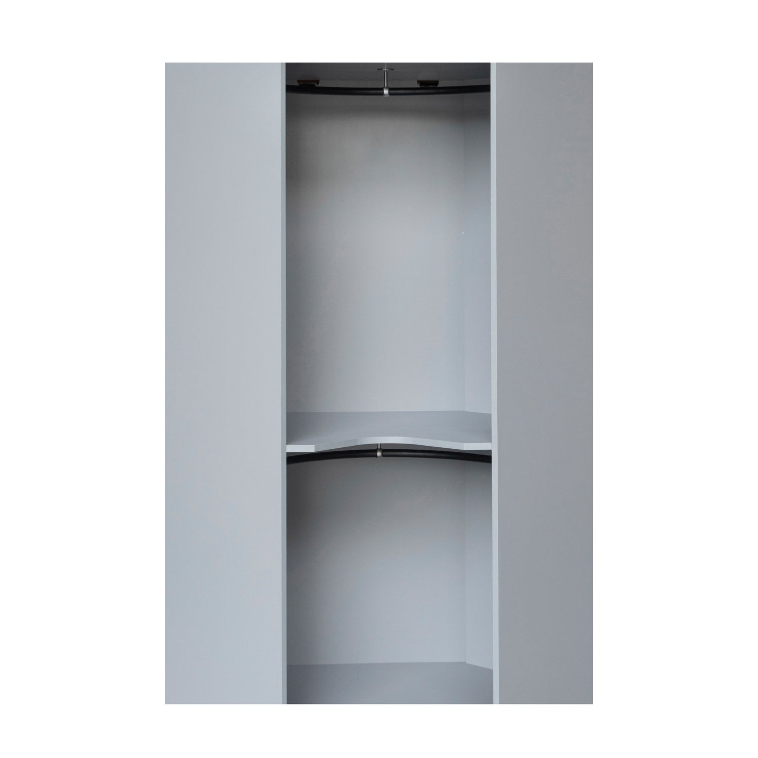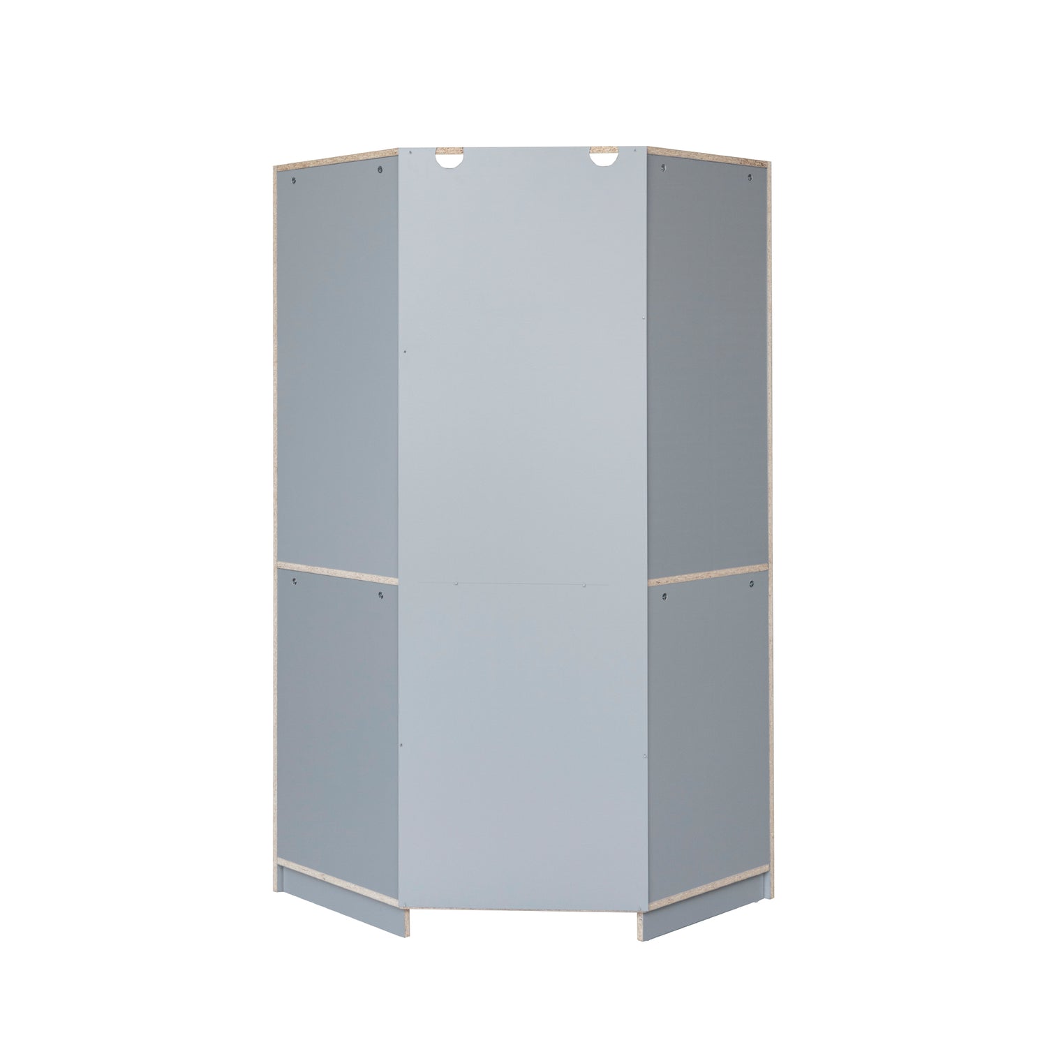 The unique polygonal structure is tailored to utilize corner spaces effectively, optimizing room layout and offering ample storage without compromising on style. Available in classic White, sophisticated Grey, and Natural finishes, ensuring versatility to match various interior styles and personal preferences.
