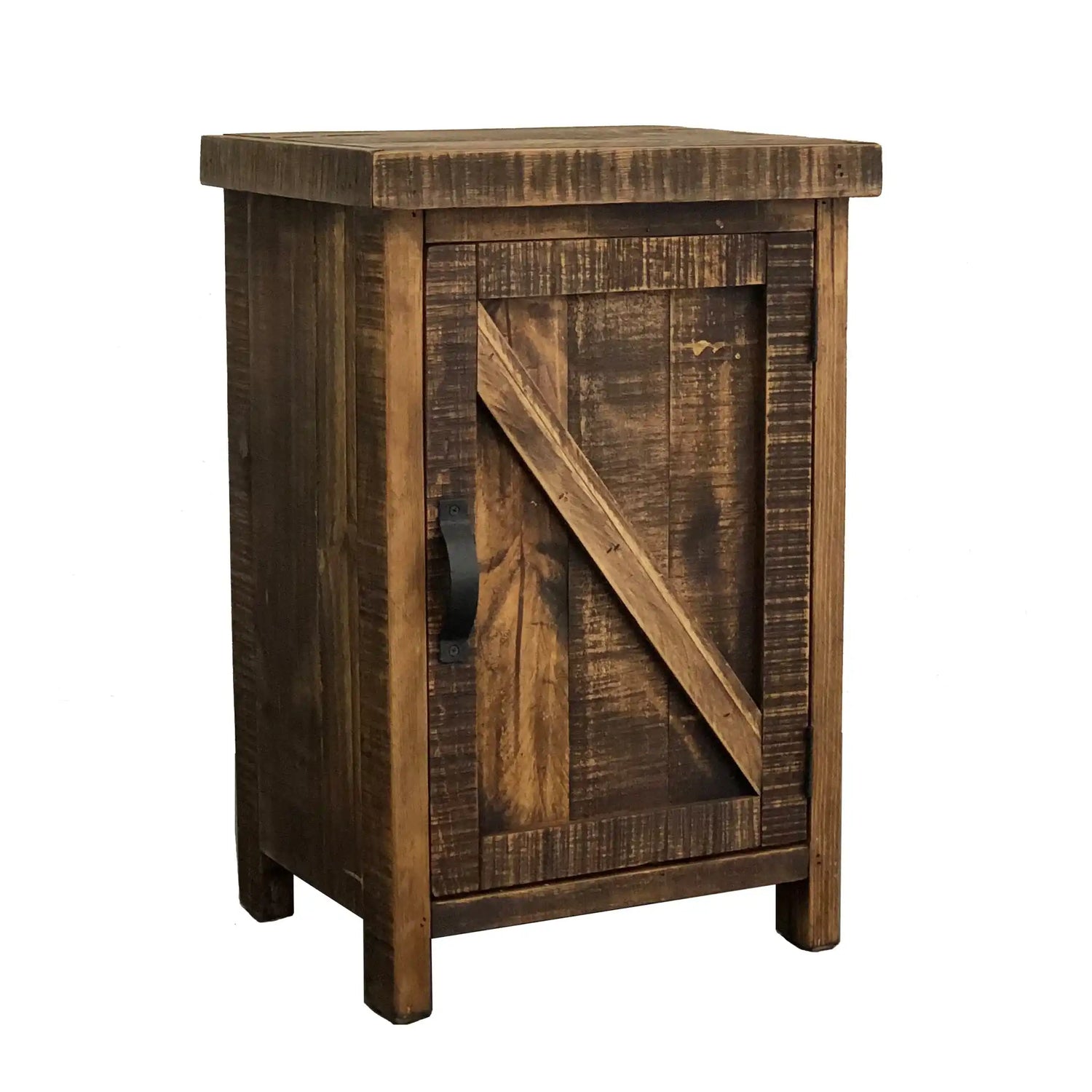 Elevate your bedroom decor with the Rancho Nightstand in dark brown wax finish from Rustics For Less. Crafted from solid pine wood, this nightstand combines rustic charm with functional design. Featuring a single door with a shelf, it offers convenient bedside storage for your essentials.