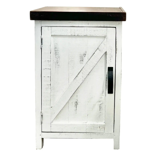 Enhance your bedside with the Rancho Nightstand from Rustics For Less, inspired by Nevada's rustic charm. Crafted from solid pine wood, this nightstand features a distinctive design with a brown wax finish on top and a white wash finish on the bottom, adding rustic elegance to any bedroom. Equipped with a movable shelf inside, it offers customizable storage to suit your needs.