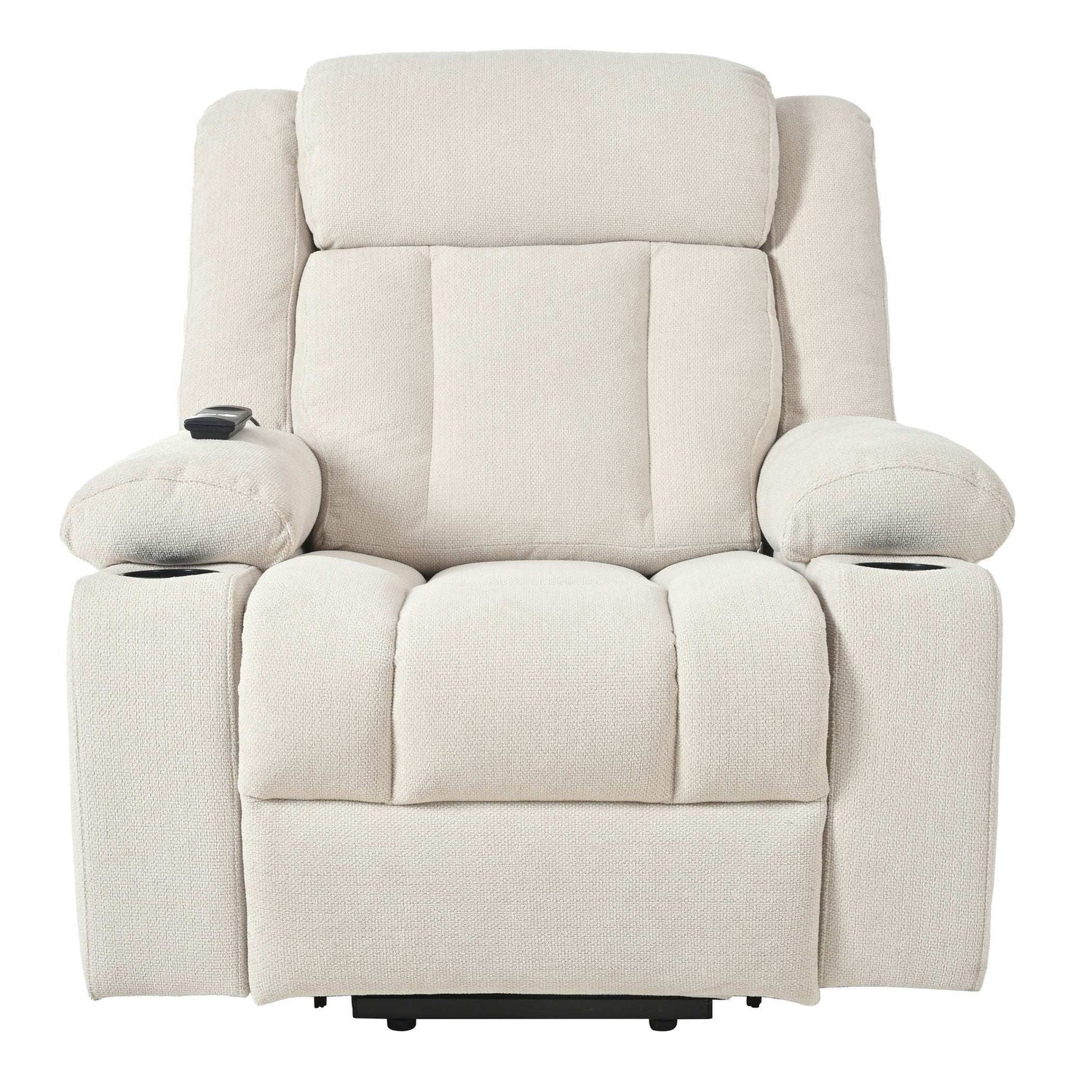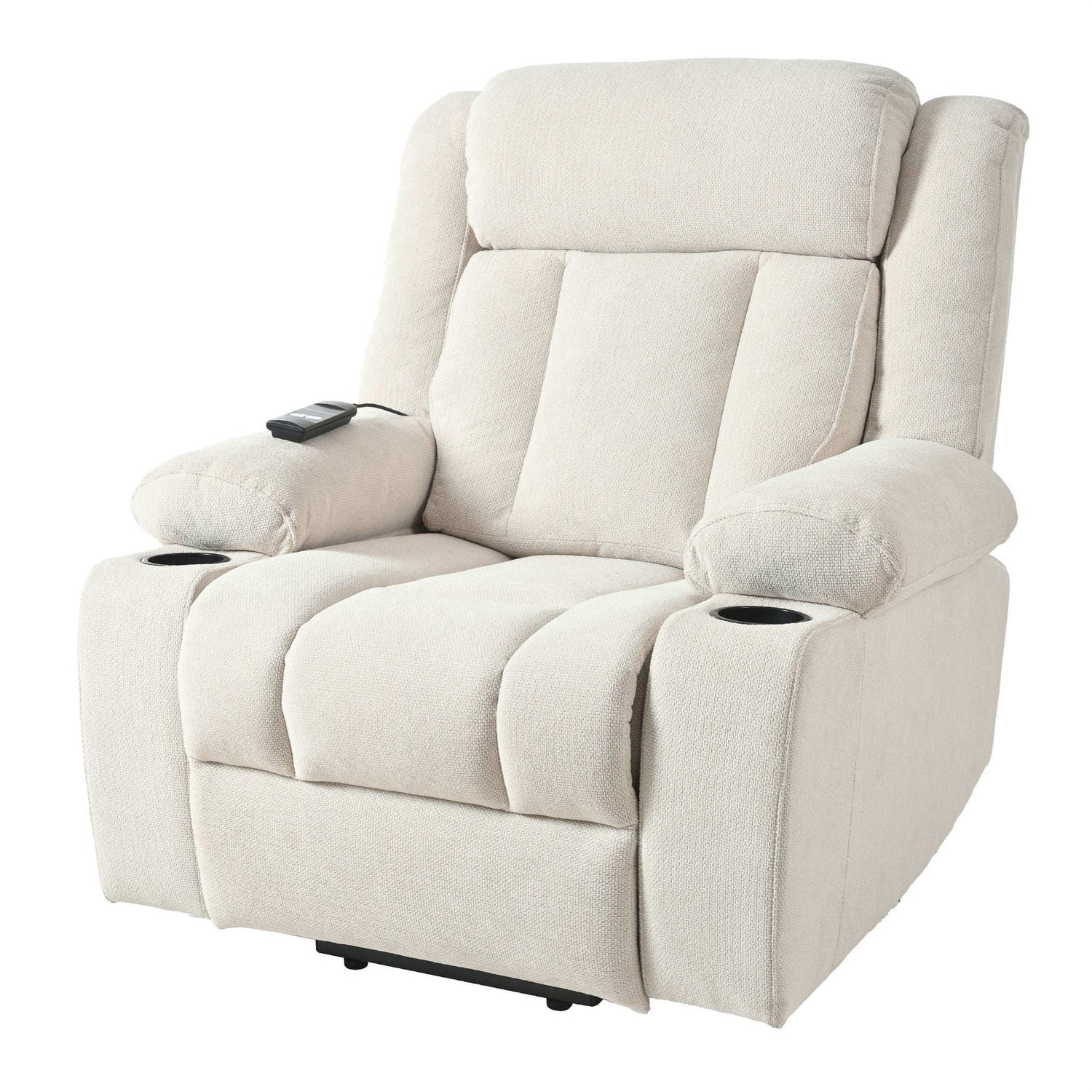 Power Lift Recliner, Extended Footrest, Remote, Cup Holders - Light Gray